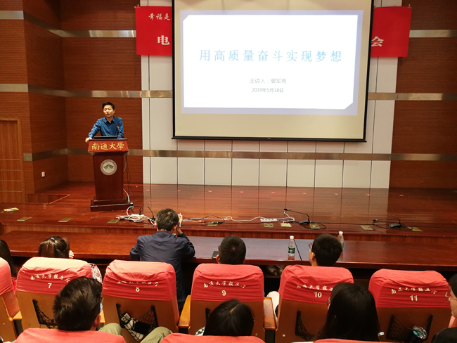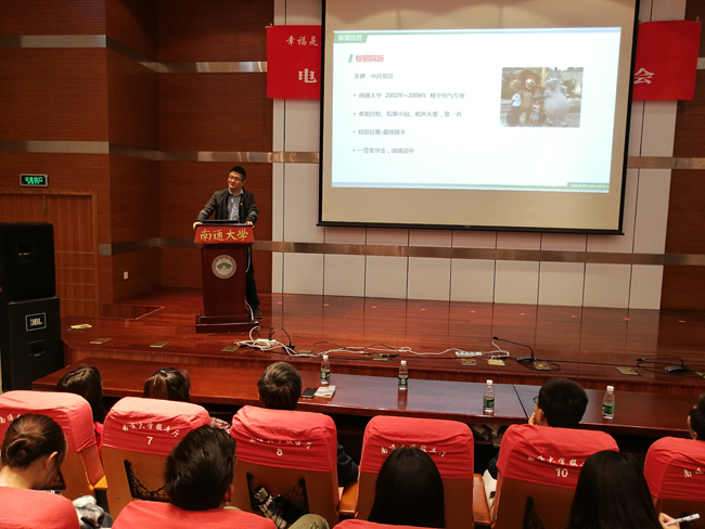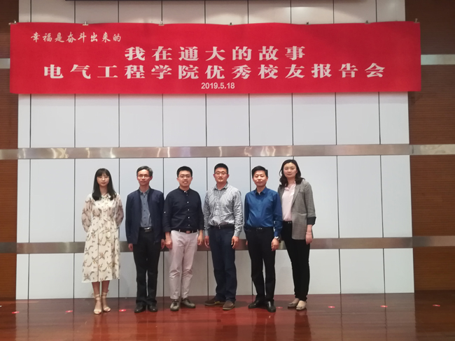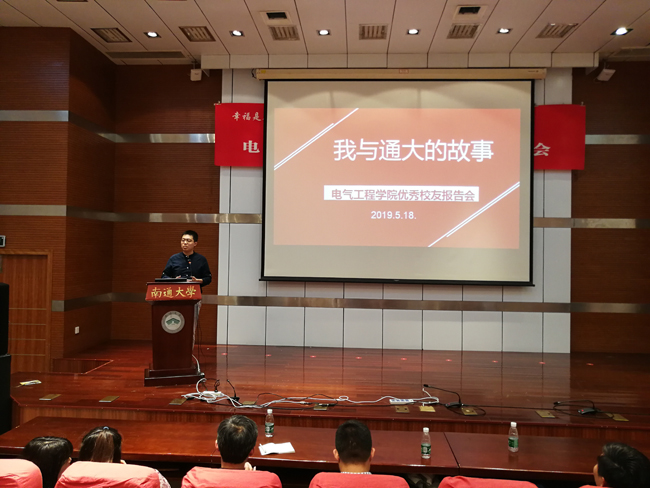 5月18日下午,电气工程公司在9号楼301报告厅举办“我在通大的故事”优秀员工报告会。苏州保控电子科技有限公司总经理朱健、南通烟滤嘴公司技术中心常务副主任郭军亮、北京小米移动软件有限公司南京分公司Android开发工程师俞钶安等三位员工回到母校,讲述他们在通大的成长故事,与学弟学妹共话人生梦想。电气工程公司党委副书记、副经理周平,全体辅导员及200多名员工代表参加报告会。报告会由建电183张洁同学主持。