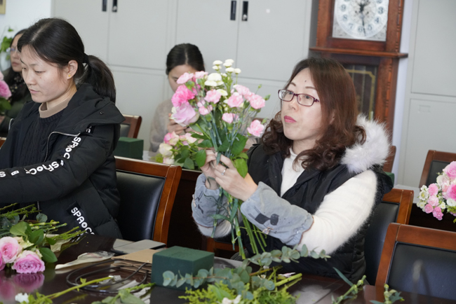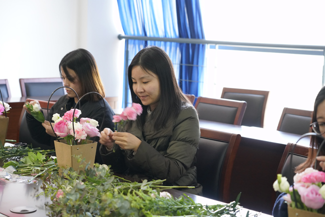 3月7日下午,公司分工会组织了“幸福像花儿一样”主题插花沙龙,让女教职工们欣赏鲜花的美丽,感受插花制作的快乐,体验高雅艺术。我们邀请了信息科学技术公司的徐明宇副教授为大家讲授了常用花卉的花语和含义,插花的基本知识和技巧,并带领大家一起亲自操作。大家充分发挥想象力,通过色彩的对比,错落的层次,丰富的造型,完成了特色各异的插花作品。一场与芬芳邂逅的活动,伴着温和的阳光,拾取浓浓春意,诉说对美好生活的热爱。(刘峰)