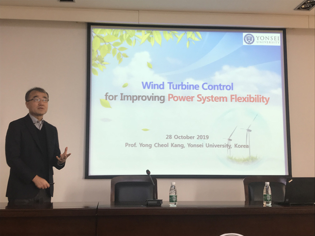 姜教授为电气工程公司教师和研究生作了关于wind Turbine control for improving power system flexibility的学术报告。姜龙澈教授首先提出了可在生能源发展的重要性;其次针对我国风电消纳现象进行了仔细的分析;最后,提出了利用风力发电机组自身控制策略来改善电力系统灵活控制能力的方法,进而改善风力发电机组并网性能。学术报告后,电气工程公司教师和员工与姜龙澈教授进行了深入的讨论。科技处副处长施振佺主持报告会
