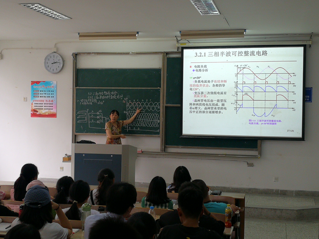 杨奕教授以《电力电子技术》这门课程为例,认真准备、精心设计课堂教学,在课堂上用自己独到的教学方式,丰富的知识内涵,娴熟的驾驭课堂能力,灵活多变的公司产品方法和先进的现代化教学手段,为青年教师们展示了一节精彩的教授示范课。