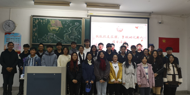 主题团日活动在师生齐唱团歌中拉开帷幕,话剧《以身报国》讲述了抗美援朝英雄李援朝,在战争时期,经过血与火的洗礼,经历生与死的考验,为保家卫国、维护和平立下不朽功勋;和平建设时期,他不改初心本色,坚守革命理想,保持优良作风,在平凡普通的工作岗位上干出了不平凡的业绩。观看《抗美援朝保家卫国》纪录片,让大家了解抗美援朝的历史,学习志愿军指战员发扬祖国和人民利益高于一切、为了祖国和民族的尊严而奋不顾身的爱国主义精神,不畏艰难困苦、始终保持高昂士气的革命乐观主义精神,以及为了人类和平与正义事业而奋斗的国际主义精神。电191班王峰以《风华正茂之际,携笔从戎之时》为题,从退伍士兵的角度讲述了“重温抗美援朝,赓续使命担当”的感悟。自183班朱颂海,以志愿者身份,讲述了参与本次团日活动的感悟,他认为:抗美援朝的精神值得新一代青年深深铭记,等待着新一代青年去传承发扬。