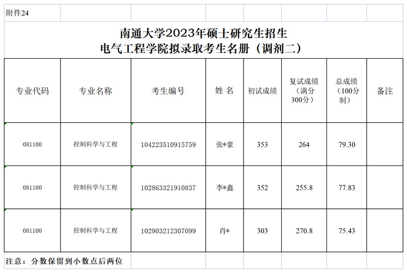 william威廉亚洲官方2023年硕士研究生招生电气工程公司拟录取考生名册(调剂二)