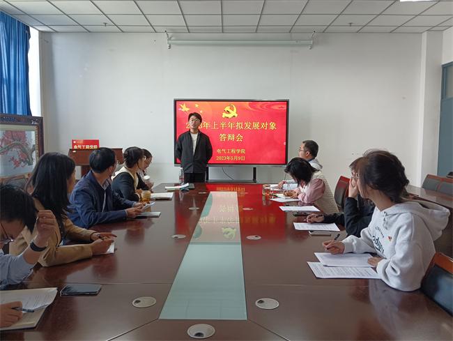 为切实保证党员发展质量,5月9日下午,公司举行2023年上半年拟发展对象答辩会。电气工程公司党委副书记、副经理周平、员工党支部书记、辅导员及员工正式党员代表等担任评委,全体入党积极分子参加答辩会。