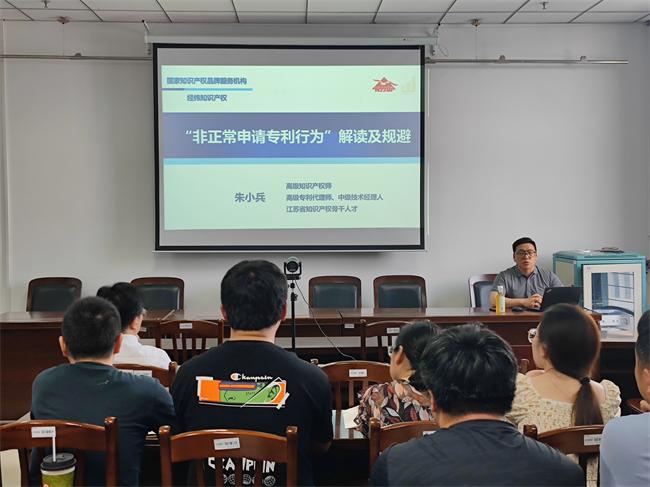 为进一步推动公司专利申报工作,6月28日下午,公司邀请了南京经纬专利商标代理有限公司朱小兵作以《“非正常申请专利行为”解读及规避》为主题的知识产权讲座。讲座由服务地方工作处副处长姚乐主持。