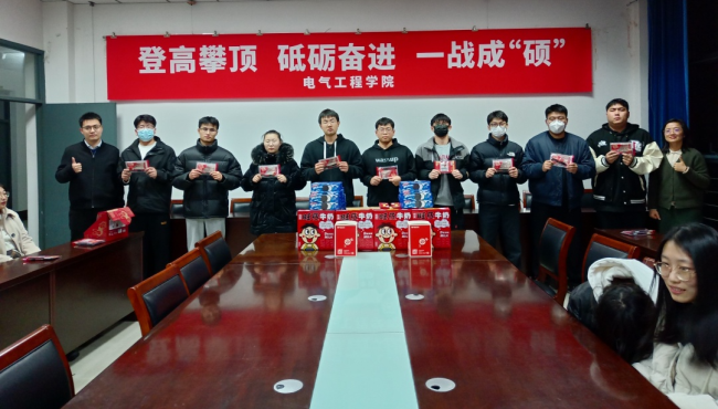 茅靖峰向积极备考的同学们表示关心和慰问并对同学们提出三点希望:一是要坚定考研决心,持之以恒跑完最后“一公里”,全力冲刺自己的理想院校,不留遗憾;二是要劳逸结合,合理安排时间,保持良好的学习状态;三是同学之间要相互扶持,相互鼓励,共圆梦想。茅靖峰表示公司会为考研的同学们提供全过程服务,助力同学们追梦成功。茅靖峰及各位领导、老师为考研学子送上公司精心准备的“考试加油包”。
