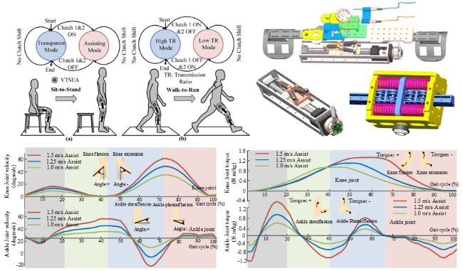 图3展品介绍:一种具有可变刚度和自校正机构的便携式平行弹性胯-膝关节助力外骨骼