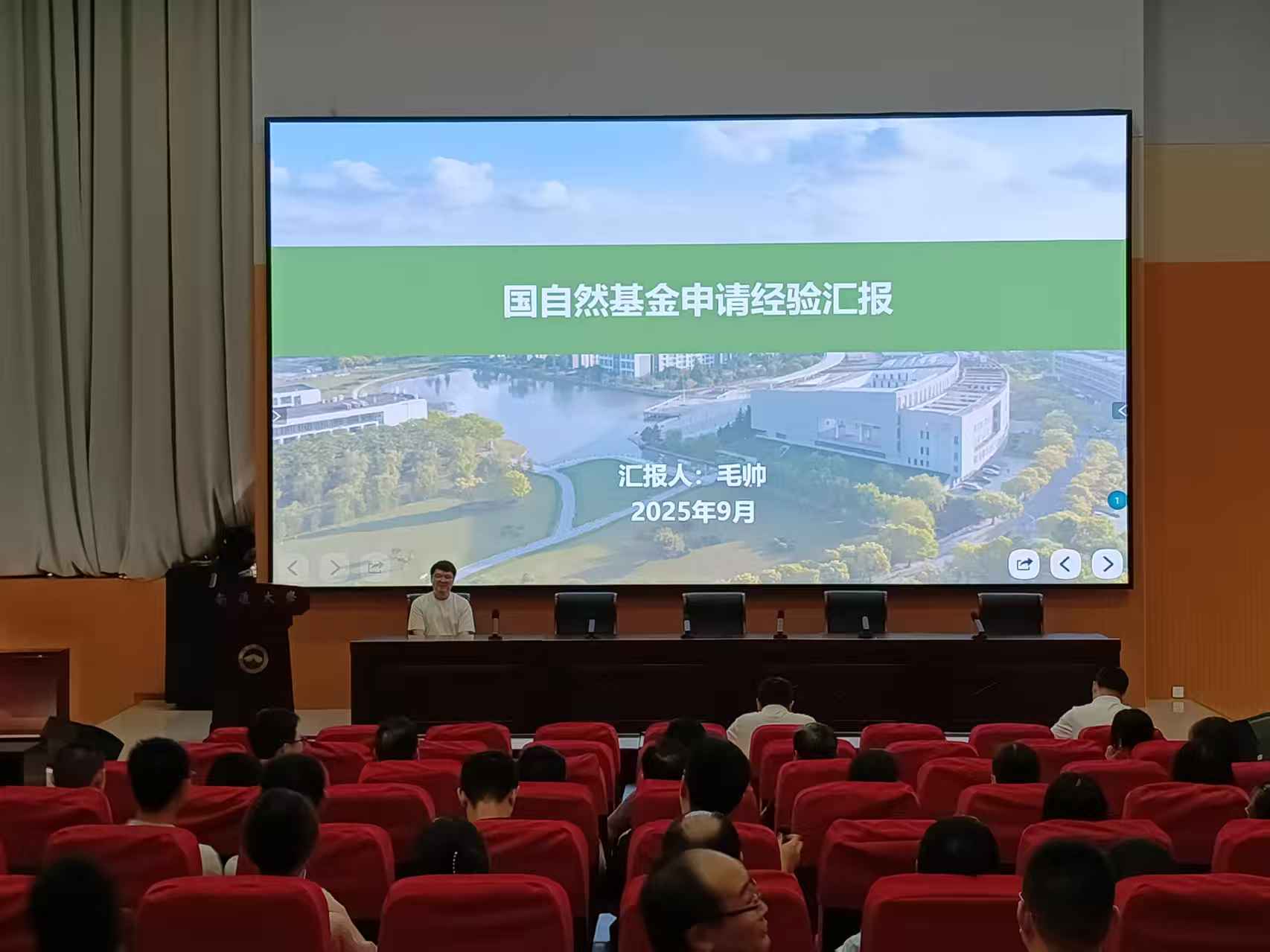 毛帅作了题为《国自然基金申请经验汇报》的分享,从基金申报书选题、撰写和修改三个角度,分享了自己3次申报国家自然科学基金过程中的经验和心得体会。他建议大家选题要避免过于成熟的方向,要挑选自己最熟悉的领域,关键词要谨慎选择反复推敲,全文图表风格要统一,并强调了申报书细节和格式的重要性。