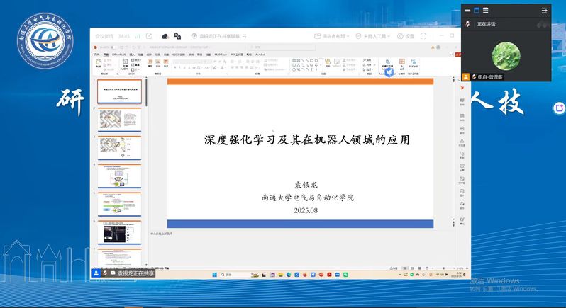 此次学术创新论坛分为专题讲座、经验分享、学员自学、撰写心得、心得交流等环节。围绕人工智能与机器人技术与应用,专家进行专题讲座:张欣欣老师的《Python工程应用-电气、自动化与机器人专业的技术融合与实践》、张堃老师的《海工装备机器人智能技术应用研究》、陈楠老师的《人工智能与机器人》、袁银龙老师的《深度强化学习及其在机器人领域中的应用》、周陈辉博士的《永磁同步电机模型预测控制》;第二十届中国研究生电子设计大赛全国总决赛团队二等奖获得者祁宇、第十九届中国研究生电子设计竞赛新思科技企业专项奖三等奖获得者张峻介绍了团队获奖项目同时分享了自身参赛经历;学员结合专家推荐的《机器人学:建模、控制与视觉》(第2版)、《人工智能:现代方法》(第4版)等书单进行自学;最后全体学员撰写学习心得,优秀学员代表进行了学习心得交流。